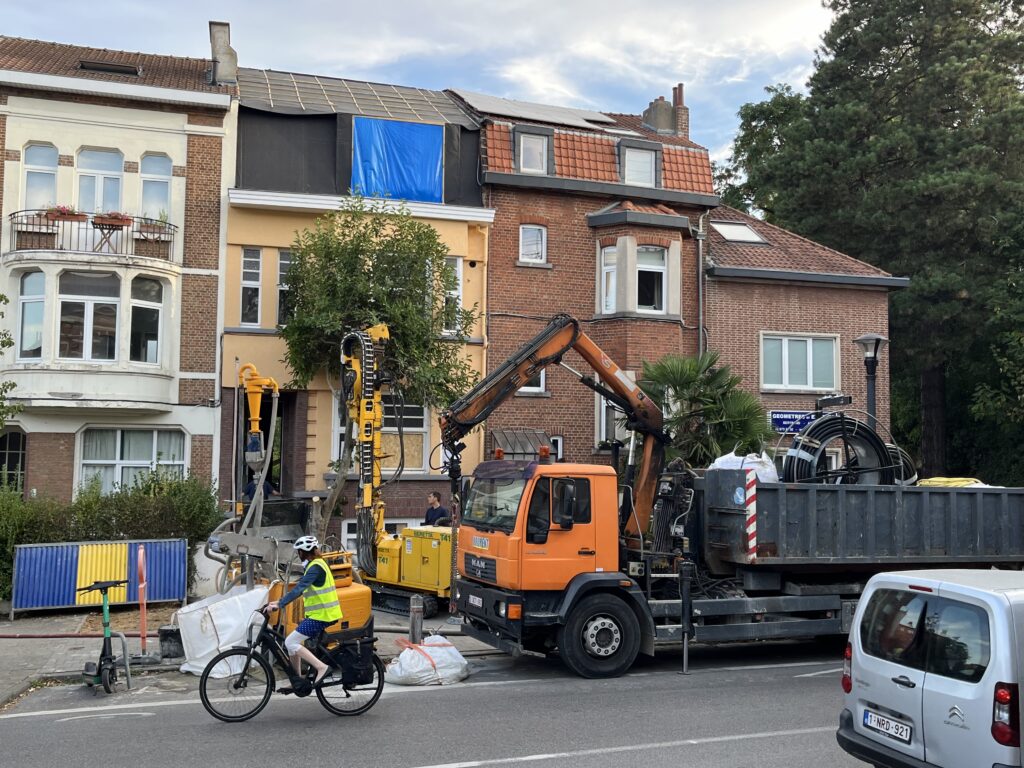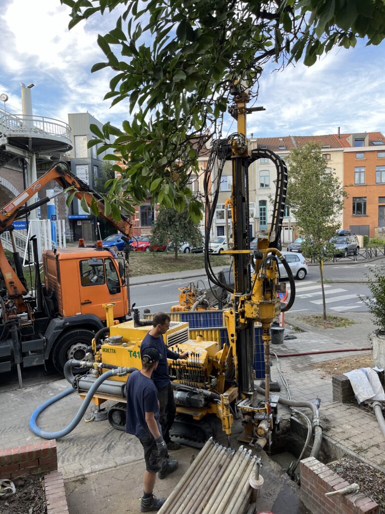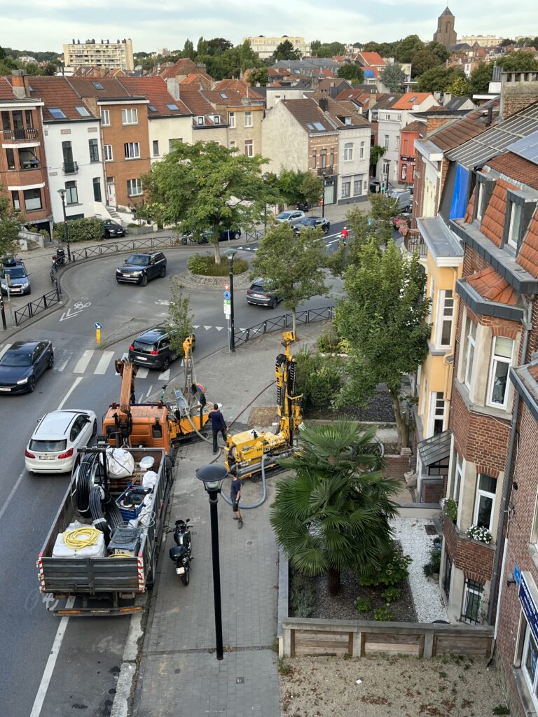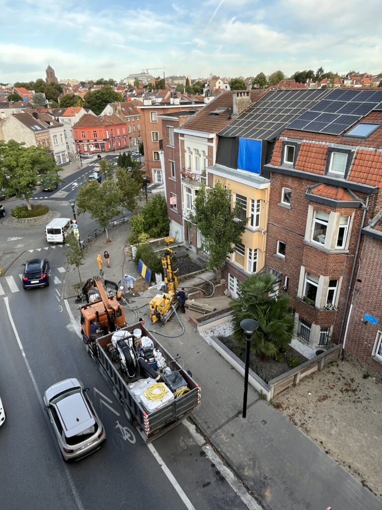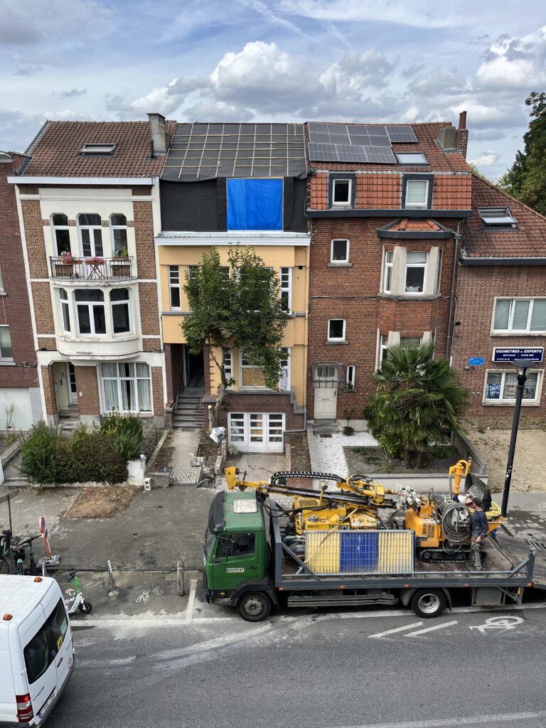 Accès réalisé depuis la voirie. Les forages ont nécessité l’occupation temporaire du trottoir afin de permettre la réalisation des forages ainsi que l’installation des sondes géothermiques